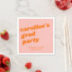 This graduation party napkin features a bold retro italic headline in orange on a soft pink background, personalized with your grad's name and class year. A fun, colorful addition to the party table that ties right into the pink and orange theme.