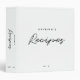 A simple minimalist white background and black script text recipe cookbook binder that can be customized to your name and volume number. An ideal gift for food lovers, bridal shower, foodies, cooks, chefs etc. Keep your family recipes, baking recipes, mom's recipes or favourite cooking recipes all in one book. Change the volume number and make it a series! Great gift for anyone who loves the kitchen. Customize the text and make it your own.