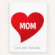 Custom Mom, red heart white letters Notebook