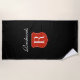 Custom monogram beach towel gift with surname. Elegant beachtowel with monogram name initial. Classy Holiday or Birthday gift idea for men, women and kids. Create personalized towels for friends, family, mom, dad, children, students, boss, co worker, colleague, husband, wedding couple, newly weds, bride and groom, mr and mrs etc. Chic summer accessories for beach or pool party. Logo shield with luxury typography.