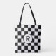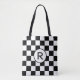 Custom Monogram Black and White Chequered Pattern Tote Bag
