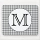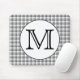 Custom Monogram. Black and White with Grey Check. Mouse Pad
