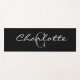 Custom monogram black yoga mat for workout. Elegant design for yoga lessons, class trainer, coach or gym instructor. Fun personal fitness equipment gift for him or her. Add your own glamourous name and monogrammed initial. Sports material for yoga poses. Stylish script typography template. Novelty Birthday gift ideas for men and women.