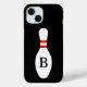 Custom monogram bowling pin iPhone 15 case. Custom design for bowler. Make your own cool present for friends and family. Personalized cover with name or initial.