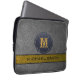 Custom Monogram Bronze and Black Leather Laptop Sleeve