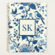 This is a beautifully designed spiral-bound planner featuring a custom monogram. The cover art is a classic and elegant blue and white floral pattern, reminiscent of traditional porcelain designs. It’s adorned with a variety of stylized flowers and leaves, interspersed with charming birds in mid-flight and at rest, evoking a serene garden scene. The focal point of the design is a centred square frame that houses your custom monogram initials in a bold, serif font, suggesting a personal touch for the owner. This notebook would be perfect for personal journalling, as a thoughtful gift, or a stylish accessory for school or office work. The monogram adds a unique and personalized aspect, making it a treasured item for anyone who receives it.