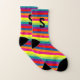 Custom monogram colourful rainbow striped pattern socks. Cute coloured stripes print design for men and women. Custom clothing accessories for children and adults. Also nice as cheerful Christmas stocking. Available in small and large sizes. Modern fun design with bright colours. Add your own name initial letter, lucky number or funny quote. Funny Birthday gift idea for friends, family, dad, mom, wife, husband, son, daughter, brother, sister, co worker, boss, employee, stepdad, girl, boy, etc. Monogrammed presents for him and her.