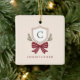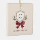 Custom Monogram Crest Bow Christmas Ceramic Ornament