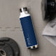 Custom monogram, deep navy blue water bottle