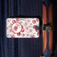 Add a touch of elegance to your travels with this personalized luggage tag featuring a whimsical cherry and cherry blossom design. One side showcases a monogram in a stylish circular frame, while the other side includes your customizable contact information in bold red accents. Made for frequent travelers, this luggage tag combines beauty and practicality, ensuring your bags are easy to spot while remaining uniquely yours. Perfect for suitcases, carry-ons, or backpacks!