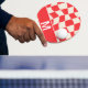 Custom monogram elegant white red squares pattern Ping Pong Paddle , simple geometric pattern monogram Ping Pong Paddle,