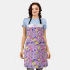 Custom monogram name floral purple trendy cute apron for mom, mother, friend, woman. Personalize with name, letter, initials for a birthday gift, mother day gift, christmas gift. Modern colourful apron with cute flowers, multicolor pattern, purple pink background, and small flowers. Cute pretty feminine pattern for great cooker, chief, food lover. Perfect gift idea for birthday, mother's day, christmas.