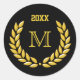 Custom Monogram Gold Laurel Wreath on Black Classic Round Sticker