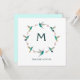Pretty custom monogram note card featuring rufous-tailed hummingbirds, violetear hummingbirds and broad-billed hummingbirds on a white background. The font style, font size and colour can be changed by clicking on "Edit using design tool".