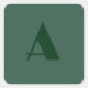 Custom Monogram Initial Letter Plain Green Retro Square Sticker