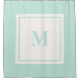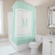 Simple graphic stripe hotel style custom monogram initial in mint green and soft off white cream. Stylish bathroom home decor.