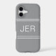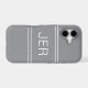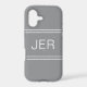 Elevate your iPhone 17 with this modern Case Mate cover in stylish Grey. Featuring up to three bold initials in shadowed white font, the design uses subtle borders to frame the monogram for a clean, professional look. Personalize easily with your name, initials, or short text using the simple template. A chic minimalist option that works for both men and women, perfect as a stylish everyday accessory or thoughtful gift.