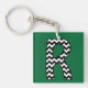 Custom Monogram Keychain: R: Black, White Chevrons Keychain