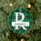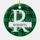 Custom Monogram Letter R Green Plaid Background Ceramic Ornament