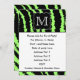 Custom Monogram Lime Green and Black Zebra Pattern Invitation