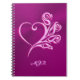 A really pretty notebook featuring an embossed-look, filigree heart and roses. It's on a contrasting, aubergine background and uses a custom monogram for you to change to your initials, just by typing into the box.