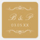 Custom Monogram Modern Elegant Gold Swirl Wedding Square Sticker