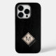 Elegant luxury masculine exclusive look iPhone case with a simple minimalist monogram initial letter and name over a black leather look (PRINTED) background. Perfect for business professional use or as a gift for a man.