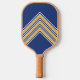 Stand out on court with a custom pickleball paddle! Personalize the template with your monogrammed initials and text — ideal for a player's name, team name, location, or a fun saying. This sports jersey style design features a retro block font, trendy script, and matching chevron colours on the reverse side. Perfect for all ages, including kids, teenagers, and adults. Custom paddles make a lovely unique gift for friends, family, and Pickleball enthusiasts! Colours: dark navy blue, yellow gold and white.