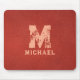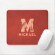 Custom Distressed Text Monogram Red Brown Faux Leather Look Elegant Template Trendy Mouse Pad / Mouasepad.