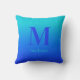Custom monogram & name Turquoise to Blue Gradient Throw Pillow
