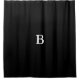 Personalize this black shower curtain with your monogram/initial. The text is white.