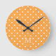 Custom Monogram. Orange and White Polka Dot. Round Clock