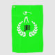 Personalized monogram lime green golf towels with golfing themed design. Great gift idea for a keen golfer.