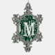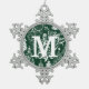 Design Your Own Custom Monogram Pewter Snowflake Ornaments by adding your own monogram initial to this green doodled Christmas tree pattern background. These make great personalized gifts.
