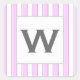 A custom monogram in grey with a light grey frame and pink stripes in light pink, dark pink and white. Click Customize It to change background colours, fonts, add custom text and more, even save your design for later.