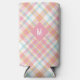 Custom Monogram Plaid / Tartan Pattern Seltzer Can Cooler