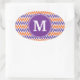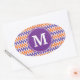 Custom Monogram Purple Orange Chevron Pattern Oval Sticker
