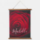 Macro photo of a beautiful red rose on black background with vintage grainy effect with custom personalizable monogram.