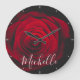 Custom monogram red rose vintage photograph large clock