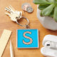 Custom Monogram S Keychain, Ditsy Floral Pattern Keychain