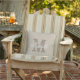 Personalized name monogram taupe beige khaki and white outdoor throw pillow. Personalizable cushion monogrammed with name and initial letter. Customizable background colour. Elegant luxury script typography text design. Classy chic home decor for relaxed outside sofa chair couch or bed. Trendy garden accessories and decorations for back yard party, patio or terrace. Rustic style.