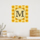 A pattern of yellow sunflowers with a monogram design. The monogram initial letter is on a light yellow and black circle. The initial letter can be changed to personalize this item. A nice floral design.