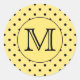 Custom Monogram Yellow and Black Polka Dot Pattern Classic Round Sticker