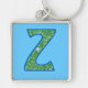 A very pretty Keychain with the initial 'Z' in a multicoloured floralblue and green 'Periwinkle' pattern on a sky blue background. You can easily change the shape and size of the keychain as well as the background colour (by using the Edit button). And if you see one of my other patterns that you prefer, please contact me through my store and I will create one at no extra charge.