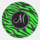 Custom Monogrammed Initial Neon Green Black Zebra Classic Round Sticker