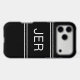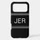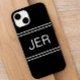 Stylish custom design features up to three bold letter initials in a shadowed white font on a classic black background. Background is divided into thirds by two matching stripes above and below the initials. Simple to use modern template allows for easy personalization. E-mail beachpausedesigns@gmail.com or use the message link in this listing with questions or custom colour requests.