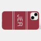 Stylish custom design features up to three bold letter initials in a shadowed white font on a contemporary crimson red background. Background is divided into thirds by two matching stripes above and below the initials. Simple to use modern template allows for easy personalization. E-mail beachpausedesigns@gmail.com or use the message link in this listing with questions or custom colour requests.