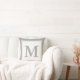 A large grey monogram appears on a white background. The monogram has a grey and white border. Personalize the white and grey throw pillow with your initial/monogram.