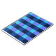 Refresh your space with this cool and contemporary "Blue Mosaic" pattern. The artwork features a grid of squares in a monochromatic palette of navy, royal blue, and cyan, creating a look reminiscent of classic swimming pool tiles, retro 8-bit video game graphics, or a modern patchwork quilt.