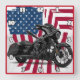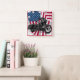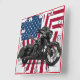 Custom motorcycle art with American flag backdrop Square Wall Clock